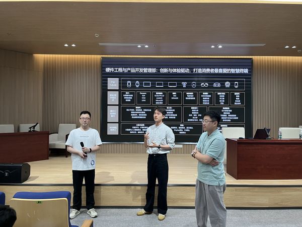 随后,华为终端BG技术专家贲志朋通过线上会议全面介绍了华为终端业务的发展脉络与核心产品矩阵。从智能手机、智能家居到车载通信系统,华为以“1+8+N”战略构建全场景智慧生态,其自研的充电技术、全链路协调仿真技术等持续引领行业创新。专家还详细介绍了部分华为研究所的布局,其中南京研究所聚焦终端硬件研发,承担着通信模块、显示模组等核心部件的创新任务,其研发的耐腐蚀涂层技术可使通信设备在极端环境下稳定运行。