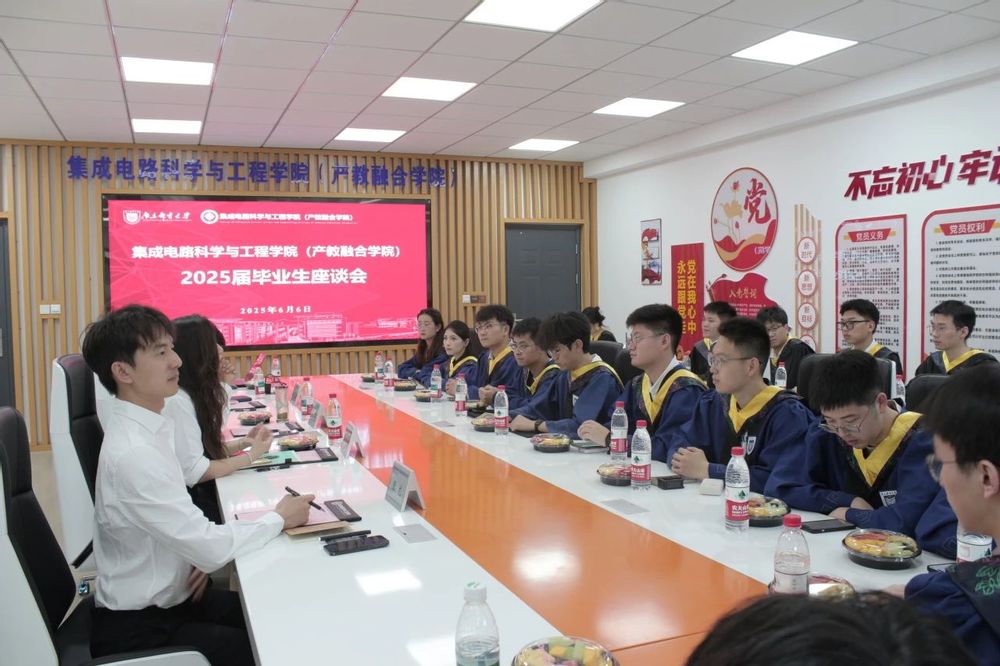 座谈会最后,全体师生合影留念,为这段珍贵的求学时光画上圆满的句号。此次座谈会不仅是对毕业生学习生涯的总结,更是对他们未来发展的鼓励与期许。学院将继续深化产教融合,培养更多集成电路领域的优秀人才,为国家产业发展贡献力量。