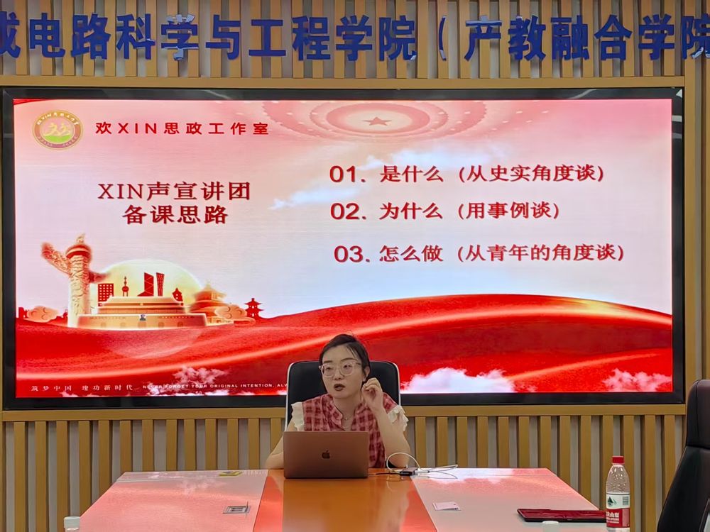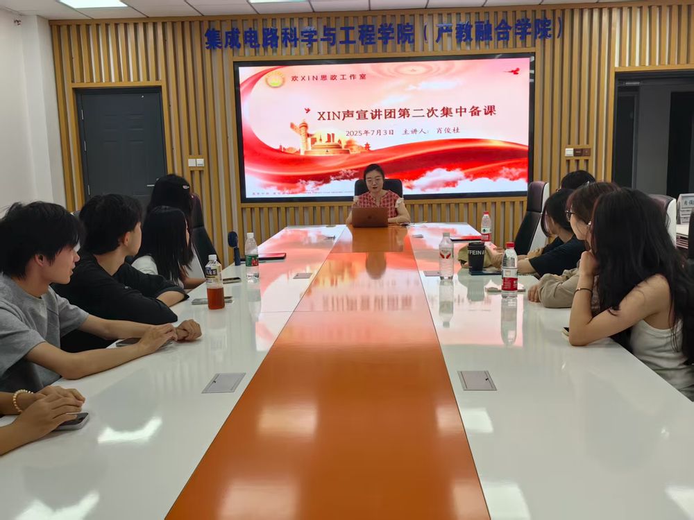 为深入学习领会党的精神谱系内涵,提升宣讲团成员理论素养与宣讲能力,XIN声宣讲团于7月3日在电光学科楼B座223会议室开展第二次集中备课活动。公司党委副书记、副经理肖俊桂以《筑梦中国,建功新时代》为题作专题辅导,系统阐释党的精神谱系核心内容,并为宣讲团成员指导备课方法、布置实践任务。宣讲团全体成员参加学习。