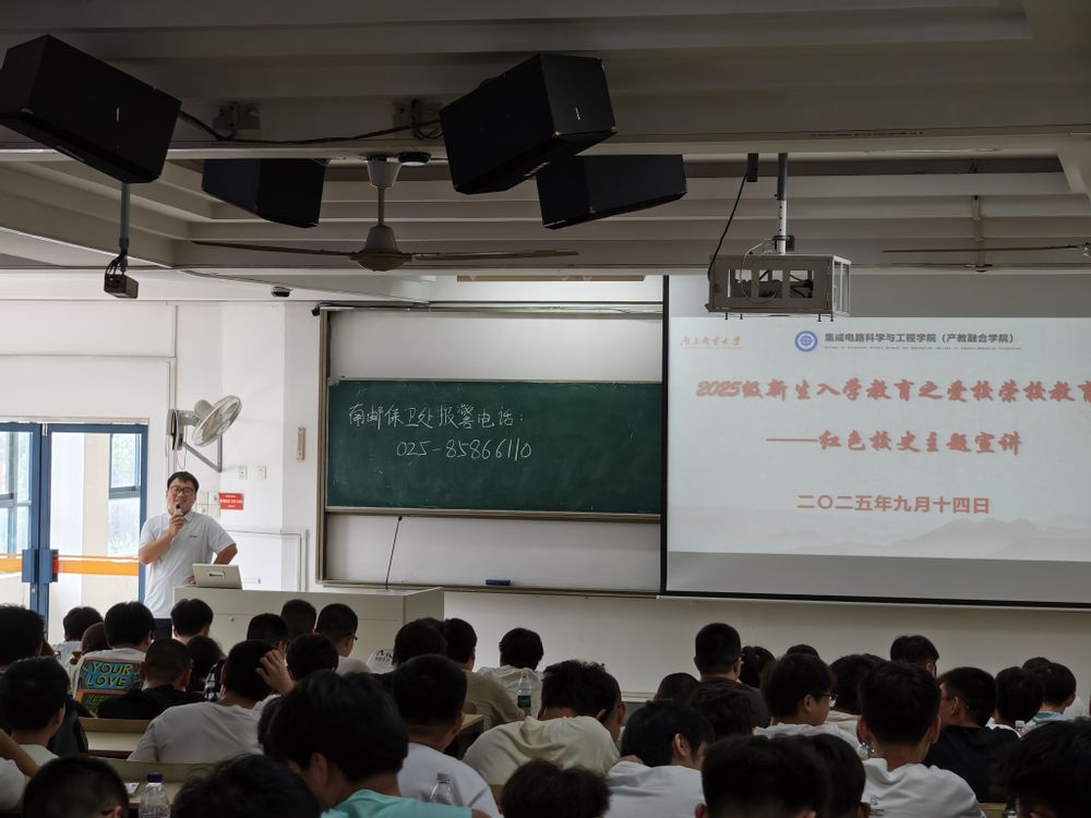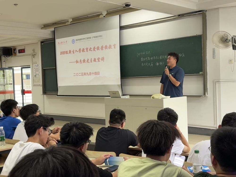 为了帮助新生深入了解学校八十三载办学历程中积淀的红色基因与文化传统,增强对学校的认同感、归属感和荣誉感,引导其树立正确的价值观和成才观,9月,学院在教2-301和教2-302教室成功举办了2025级新生入学教育系列活动之“爱校荣校”主题教育。本次活动由学院2025级辅导员林钰程和侯士明主讲,面向全体新生开展了以南邮校史为核心的红色基因教育,为同学们开启老员工涯注入精神动力。