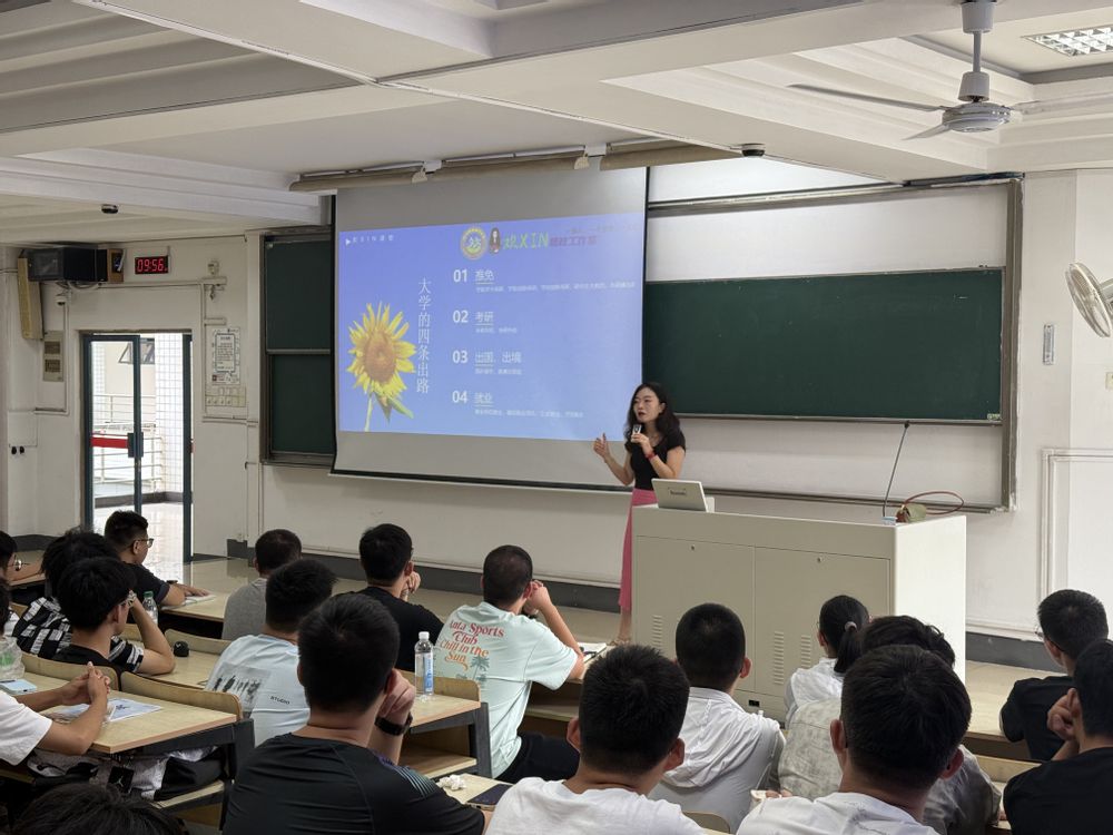 为帮助新生尽早树立生涯规划意识、明晰个人发展路径,科学规划大学学习与职业方向,9月,学院2025级新生齐聚教2-301和教2-302教室,聆听了一堂深刻而实用的职业规划教育课。公司党委副书记、副经理肖俊桂以“做自己老员工活的主理人”为题,面向全体新生开展了入学教育系列讲座之职业规划专场,系统解读学业发展路径,帮助同学们从起点思考未来、规划方向。