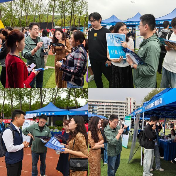 招聘会现场气氛热烈,来自不同行业的知名企业齐聚一堂,为毕业生们提供了丰富的就业岗位。肖书记一行人抵达现场后,随即深入各个招聘展位,先后与江苏卓胜微电子、盛合晶微半导体、中天科技、中磊电子、苏州超锐微电子、星恒电源、工业和信息化部电子第五研究所华东分所、国睿科技、南京熊猫通信、南京誉葆科技、南京熊猫电子、南京微通电子、无锡友利微电子、辰卓科技、臻鼎科技、拓维光电、友顺科技等约20家以集成电路领域相关专业毕业生为招聘目标的企业展开深入交流。重点了解了企业招聘需求、岗位要求以及人才培养计划,同时积极向企业推荐公司优秀毕业生资源,助力毕业生精准对接岗位。此外,肖书记一行还认真听取了企业对公司人才培养工作的建议,这些反馈将为公司后续优化人才培养方案、提升人才培养质量提供有力参考。
