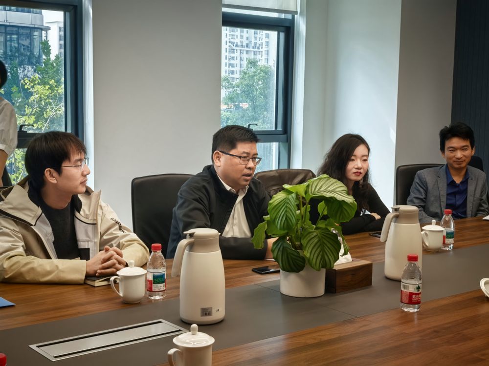 同日下午,学院赶往此次行程的第二站——长沙驰芯半导体科技有限公司。作为一家专注于前沿芯片设计的新锐企业,驰芯半导体在高速接口、先进工艺等领域展现了强大的创新活力。高翔书记一行深入研发一线,与公司创始人景振海总经理及技术骨干进行了深入交流。座谈会上,副书记肖俊桂就学院员工培养情况、就业去向等进行了分享,并表示希望能够与驰芯半导体建立长期的合作关系,将人才输送到企业中,实现共赢。景振海总经理回顾了自身的创业历程,并强调了一流创新人才对于科技型企业发展的核心作用。他表示,非常期待能从学院吸纳更多具有扎实功底和创新思维的优秀毕业生。
