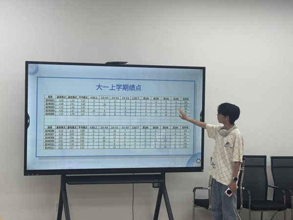 1、“数据透视”班级成绩分析: 班长对大一学年成绩进行多维度、精细化分析,通过横向与纵向对比,帮助员工精准定位学业短板与优势,明确个人在年级和班级中的坐标,为后续学习规划提供科学依据。